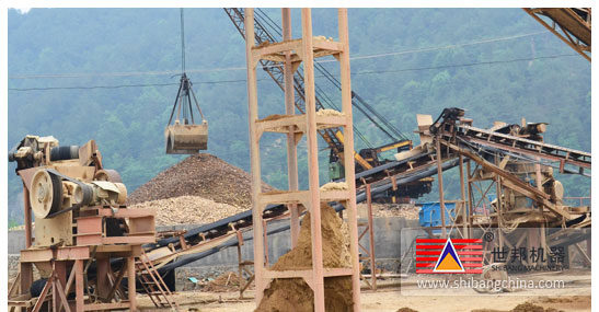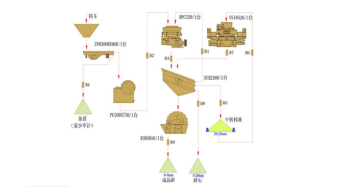 日運轉:8小時 進 料:鵝卵石,尺寸100-200mm 成 品:5-20mm石子,≤5mm混合(he)砂