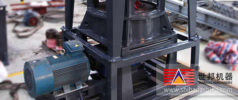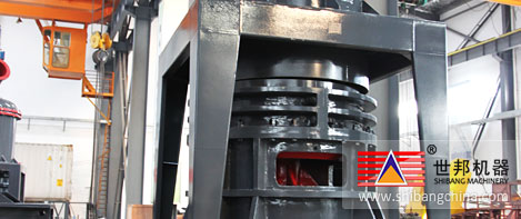 主機(ji)(ji)(ji)電動(dong)機(ji)(ji)(ji)通(tong)過(guo)(guo)減速器(qi)帶(dai)動(dong)主軸及各層(ceng)(ceng)轉(zhuan)(zhuan)盤旋(xuan)(xuan)轉(zhuan)(zhuan),轉(zhuan)(zhuan)盤通(tong)過(guo)(guo)柱銷帶(dai)動(dong)幾(ji)十個環(huan)輥在磨(mo)環(huan)滾(gun)道內(nei)滾(gun)動(dong)并(bing)旋(xuan)(xuan)轉(zhuan)(zhuan)。大(da)塊物(wu)料(liao)(liao)經(jing)(jing)錘式破碎(sui)(sui)(sui)機(ji)(ji)(ji)破碎(sui)(sui)(sui)成小顆粒(li)后由提升機(ji)(ji)(ji)送(song)入(ru)(ru)儲(chu)料(liao)(liao)倉(cang),電磁振動(dong)給(gei)料(liao)(liao)機(ji)(ji)(ji)將(jiang)物(wu)料(liao)(liao)均勻的(de)(de)送(song)到上轉(zhuan)(zhuan)盤的(de)(de)中部(bu),物(wu)料(liao)(liao)在離心(xin)力(li)的(de)(de)作(zuo)用下散(san)向圓周邊,并(bing)落(luo)入(ru)(ru)磨(mo)環(huan)的(de)(de)滾(gun)道內(nei)被環(huan)輥沖壓、滾(gun)碾(nian)、研磨(mo)而(er)粉(fen)(fen)碎(sui)(sui)(sui),物(wu)料(liao)(liao)經(jing)(jing)層(ceng)(ceng)粉(fen)(fen)碎(sui)(sui)(sui)后落(luo)入(ru)(ru)層(ceng)(ceng)及第(di)三(san)層(ceng)(ceng),高壓離心(xin)風機(ji)(ji)(ji)的(de)(de)抽吸作(zuo)用將(jiang)外部(bu)空氣(qi)吸入(ru)(ru)機(ji)(ji)(ji)內(nei),并(bing)經(jing)(jing)過(guo)(guo)第(di)三(san)層(ceng)(ceng)粉(fen)(fen)碎(sui)(sui)(sui)后的(de)(de)粗(cu)粉(fen)(fen)帶(dai)入(ru)(ru)選(xuan)粉(fen)(fen)機(ji)(ji)(ji)內(nei)。選(xuan)粉(fen)(fen)機(ji)(ji)(ji)內(nei)旋(xuan)(xuan)轉(zhuan)(zhuan)的(de)(de)渦(wo)輪使粗(cu)顆粒(li)物(wu)料(liao)(liao)回落(luo)重磨(mo),細粉(fen)(fen)則(ze)隨氣(qi)流進入(ru)(ru)旋(xuan)(xuan)風集粉(fen)(fen)器(qi)并(bing)由其下部(bu)的(de)(de)卸(xie)料(liao)(liao)閥排出即為成品(pin),而(er)帶(dai)有(you)少量細粉(fen)(fen)塵(chen)的(de)(de)氣(qi)流則(ze)經(jing)(jing)過(guo)(guo)脈沖除(chu)塵(chen)器(qi)凈化后通(tong)過(guo)(guo)風機(ji)(ji)(ji)和(he)消聲器(qi)排出。