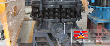 彈簧(huang)破碎(sui)機(ji)工作時(shi),電(dian)動(dong)機(ji)通(tong)過水平(ping)軸(zhou)和(he)一對傘齒輪帶(dai)動(dong)偏心(xin)軸(zhou)套旋轉,破碎(sui)圓錐(zhui)軸(zhou)心(xin)線在偏心(xin)軸(zhou)套的迫動(dong)下做旋擺(bai)運動(dong),使(shi)得破碎(sui)壁表(biao)面(mian)時(shi)而(er)(er)靠近(jin)又(you)時(shi)而(er)(er)離(li)開軋(ya)臼壁的表(biao)面(mian),從而(er)(er)使(shi)礦石在破碎(sui)腔內不(bu)斷地受到擠(ji)壓和(he)彎曲而(er)(er)被(bei)破碎(sui)。